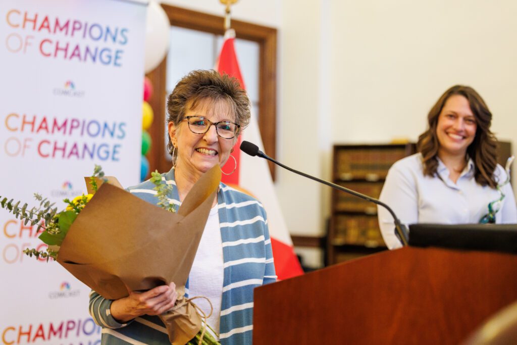 At the surprise celebration, the room was filled with tears and applause as Kennedy made her entrance. She had no idea Comcast enlisted elected leaders and loved ones to honor her as a “Champion of Change.”